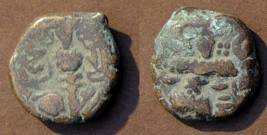 | Description / विवरण | Descrpn./Obv Stylised seated Goddess facing; Sharada legend, Ha (on l.) rsha ra (on r.). Descrpn./Rev Stylised standing king design; Sharada legend, jadeva (on r.) |
