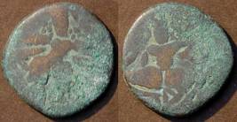 | Description / विवरण | Descrpn./Obv Stylised seated Goddess facing; Sharada legend, Cha (on r.). Descrpn./Rev Stylised standing king design; Sharada legend, kra (on r.) |