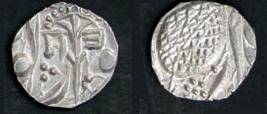 | Description / विवरण | Descrpn./Obv In the centre, a chhatra with Sa and Ta in Gurumukhi script on the left and right of its shaft; traces of the Persian legend seen on the obverse of the bigger Nanakshahi coins of Amritsar mint are also seen. Descrpn./Rev Big peepal leaf and traces of the Persian legend seen on the reverse of the bigger Nanakshahi coins of Amiritsar mint - Shri Amritsarjiv zarb [VS Year] Takht maimanat julus manus Akal Bakht. Especially traces of alif of Akal and te of Takht and maimanat are seen |