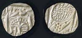 | Description / विवरण | Descrpn./Obv In the centre, a chhatra with Sa and Ta in Gurumukhi script on the left and right of its shaft; traces of the Persian legend seen on the obverse of the bigger Nanakshahi coins of Amritsar mint are also seen. Descrpn./Rev Big peepal leaf and traces of the Persian legend seen on the reverse of the bigger Nanakshahi coins of Amiritsar mint - Shri Amritsarjiv zarb [VS Year] Takht maimanat julus manus Akal Bakht. Especially traces of alif of Akal and te of Takht and maimanat are seen |