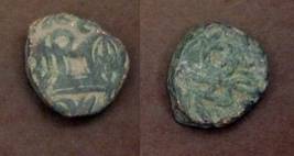 | Description / विवरण | Descrpn./Obv Recumbent bull facing left, wearing jhula (saddle cloth). Above, legend in Sarada script Sri Samantadeva (in cursive letters, mostly truncated and seen partially or off the flan). Descrpn./Rev Rider with lance on caparisoned horse facing right. |