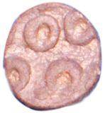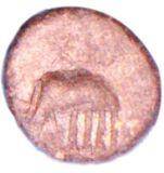 | Description / विवरण | Lead coin with partly seen figure of animal and Ujjain symbol. Obverse Elephant head is missing Reverse Two orbs without connecting bar and other orbs partly cut off. |