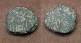 | Description / विवरण | Descrpn./Obv Recumbent bull facing left, wearing jhula (saddle cloth). Above, legend in Sarada script Sri Samantadeva (in cursive letters, mostly truncated and seen partially or off the flan). Descrpn./Rev Rider with lance on caparisoned horse facing right. |