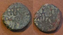 | Description / विवरण | Descrpn./Obv Recumbent bull facing left, wearing jhula (saddle cloth). Above, legend in Sarada script Sri Samantadeva (in cursive letters, mostly truncated and seen partially or off the flan). Descrpn./Rev Rider with lance on caparisoned horse facing right. |