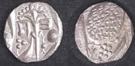 | Description / विवरण | Descrpn./Obv In the centre, a chhatra with Sa and Ta in Gurumukhi script on the left and right of its shaft; traces of the Persian legend seen on the obverse of the bigger Nanakshahi coins of Amritsar mint are also seen. Descrpn./Rev Big peepal leaf and traces of the Persian legend seen on the reverse of the bigger Nanakshahi coins of Amiritsar mint - Shri Amritsarjiv zarb [VS Year] Takht maimanat julus manus Akal Bakht. Especially traces of alif of Akal and te of Takht and maimanat are seen |