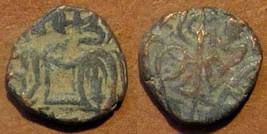 | Description / विवरण | Descrpn./Obv Recumbent bull facing left, wearing jhula (saddle cloth). Above, legend in Sarada script Sri Samantadeva (in cursive letters, mostly truncated and seen partially or off the flan). Descrpn./Rev Rider with lance on caparisoned horse facing right. |