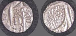 | Description / विवरण | Descrpn./Obv In the centre, a chhatra with Sa and Ta in Gurumukhi script on the left and right of its shaft; traces of the Persian legend seen on the obverse of the bigger Nanakshahi coins of Amritsar mint are also seen. Descrpn./Rev Big peepal leaf and traces of the Persian legend seen on the reverse of the bigger Nanakshahi coins of Amiritsar mint - Shri Amritsarjiv zarb [VS Year] Takht maimanat julus manus Akal Bakht. Especially traces of alif of Akal and te of Takht and maimanat are seen |