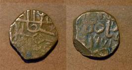 | Description / विवरण | Descrpn./Obv Part of as-sultan al-azam Hussain Shah, diamond shaped knot in centre. Descrpn./Rev Date in Persian word hahsad haftaad wa x |