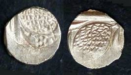 | Description / विवरण | Descrpn./Obv In the centre, a chhatra with Sa and Ta in Gurumukhi script on the left and right of its shaft; traces of the Persian legend seen on the obverse of the bigger Nanakshahi coins of Amritsar mint are also seen. Descrpn./Rev Big peepal leaf and traces of the Persian legend seen on the reverse of the bigger Nanakshahi coins of Amiritsar mint - Shri Amritsarjiv zarb [VS Year] Takht maimanat julus manus Akal Bakht. Especially traces of alif of Akal and te of Takht and maimanat are seen |