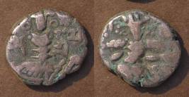 | Description / विवरण | Descrpn./Obv Stylised seated Goddess facing; Sharada legend, Sa (on l.) ngrama ra (on r.). Descrpn./Rev Stylised standing king design; Sharada legend, jadeva (on r.) |
