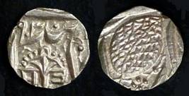 | Description / विवरण | Descrpn./Obv In the centre, a chhatra with Sa and Ta in Gurumukhi script on the left and right of its shaft; traces of the Persian legend seen on the obverse of the bigger Nanakshahi coins of Amritsar mint are also seen. Descrpn./Rev Big peepal leaf and traces of the Persian legend seen on the reverse of the bigger Nanakshahi coins of Amiritsar mint - Shri Amritsarjiv zarb [VS Year] Takht maimanat julus manus Akal Bakht. Especially traces of alif of Akal and te of Takht and maimanat are seen |