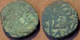 | Description / विवरण | Descrpn./Obv Recumbent bull facing left, wearing jhula (saddle cloth). Above, legend in Sarada script Sri Samantadeva (in cursive letters, mostly truncated and seen partially or off the flan). Descrpn./Rev Rider with lance on caparisoned horse facing right. |