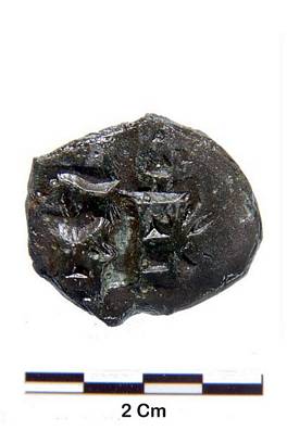 | Description / विवरण | Obverse- Above mountain and tree in railing, below legend Bha or Ru Dra Ma Gha . Reverse- Obliterated. |
