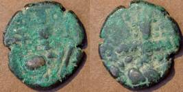 | Description / विवरण | Descrpn./Obv Stylised seated Goddess facing; Sharada legend, Ka (on l.) lasa ra (on r.). Descrpn./Rev Stylised standing king design; Sharada legend, jadeva (on r.) |
