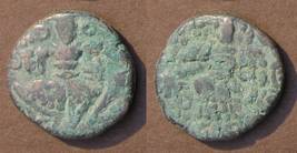 | Description / विवरण | Descrpn./Obv Stylised seated Goddess facing; Sharada legend, Sa (on l.) ngrama ra (on r.). Descrpn./Rev Stylised standing king design; Sharada legend, jadeva (on r.) |