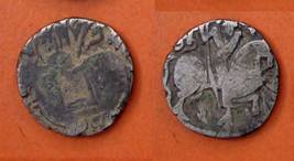 | Description / विवरण | Descrpn./Obv Recumbent bull facing left, wearing jhula (saddle cloth), with trisula (trident) symbol on rump. Above, legend in Sarada script Sri Samantadeva . Descrpn./Rev Rider with lance on caparisoned horse facing right. On left, Sarada letter bhi and on right, Sarada letter ta |
