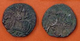 | Description / विवरण | Descrpn./Obv Recumbent bull facing left, wearing jhula (saddle cloth), with trisula (trident) symbol on rump. Above, legend in Sarada script Sri Samantadeva . Descrpn./Rev Rider with lance on caparisoned horse facing right. On left, Sarada letter bhi and on right, Sarada letter ta |