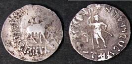 | Description / विवरण | Descrpn./Obv King holding whip, mounted on horse walking right; Greek legend, Basileos Basileon Megalou / Azilisou. Descrpn./Rev One dioscuros standing facing, holding long upright spear; Kharoshthi legend, Maharajasa rajadirajasa mahatasa / Ayilishasa |