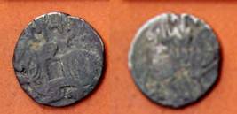| Description / विवरण | Descrpn./Obv Recumbent bull facing left, wearing jhula (saddle cloth), with trisula (trident) symbol on rump. Above, legend in Sarada script Sri Samantadeva . Descrpn./Rev Rider with lance on caparisoned horse facing right. On left, Sarada letter bhi and on right, Sarada letter ta |