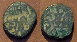 | Description / विवरण | Descrpn./Obv Recumbent bull facing left, wearing jhula (saddle cloth). Above, legend in Sarada script Sri Samantadeva (in cursive letters, mostly truncated and seen partially or off the flan). Descrpn./Rev Rider with lance on caparisoned horse facing right. |