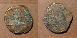 | Description / विवरण | Descrpn./Obv Partly effaced, traces of as-sultan al-azam ...shah; diamond shaped knot in centre. Descrpn./Rev Partly effaced, traces of zarb Kashmir and date in Arabic words |