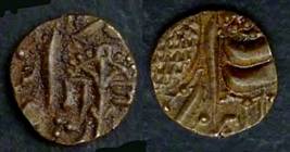 | Description / विवरण | Descrpn./Obv In the centre, a chhatra with Sa and Ta in Gurumukhi script on the left and right of its shaft; traces of the Persian legend seen on the obverse of the bigger Nanakshahi coins of Amritsar mint are also seen. Descrpn./Rev Big peepal leaf and traces of the Persian legend seen on the reverse of the bigger Nanakshahi coins of Amiritsar mint - Shri Amritsarjiv zarb [VS Year] Takht maimanat julus manus Akal Bakht. Especially traces of alif of Akal and te of Takht and maimanat are seen |