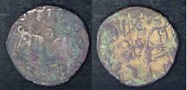 | Description / विवरण | Descrpn./Obv Recumbent bull facing left, wearing jhula (saddle cloth), with trisula (trident) symbol on rump. Above, legend in Sarada script Sri Samantadeva . Descrpn./Rev Rider with lance on caparisoned horse facing right. On left, Sarada letter bhi and on right, Sarada letter ta |