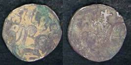 | Description / विवरण | Descrpn./Obv Recumbent bull facing left, wearing jhula (saddle cloth), with trisula (trident) symbol on rump. Above, legend in Sarada script Sri Samantadeva . Descrpn./Rev Rider with lance on caparisoned horse facing right. On left, Sarada letter bhi and on right, Sarada letter ta |