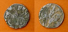 | Description / विवरण | Descrpn./Obv Recumbent bull facing left, wearing jhula (saddle cloth), with trisula (trident) symbol on rump. Above, legend in Sarada script Sri Samantadeva . Descrpn./Rev Rider with lance on caparisoned horse facing right. On left, Sarada letter bhi and on right, Sarada letter ta |