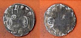 | Description / विवरण | Descrpn./Obv Recumbent bull facing left, wearing jhula (saddle cloth), with trisula (trident) symbol on rump. Above, legend in Sarada script Sri Samantadeva . Descrpn./Rev Rider with lance on caparisoned horse facing right. On left, Sarada letter bhi and on right, Sarada letter ta |