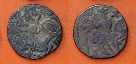 | Description / विवरण | Descrpn./Obv Recumbent bull facing left, wearing jhula (saddle cloth), with trisula (trident) symbol on rump. Above, legend in Sarada script Sri Samantadeva . Descrpn./Rev Rider with lance on caparisoned horse facing right. On left, Sarada letter bhi and on right, Sarada letter ta |