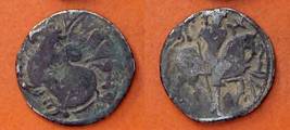 | Description / विवरण | Descrpn./Obv Recumbent bull facing left, wearing jhula (saddle cloth), with trisula (trident) symbol on rump. Above, legend in Sarada script Sri Samantadeva . Descrpn./Rev Rider with lance on caparisoned horse facing right. On left, Sarada letter bhi and on right, Sarada letter ta |