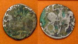 | Description / विवरण | Descrpn./Obv Recumbent bull facing left, wearing jhula (saddle cloth), with trisula (trident) symbol on rump. Above, legend in Sarada script Sri Samantadeva . Descrpn./Rev Rider with lance on caparisoned horse facing right. On left, Sarada letter bhi and on right, Sarada letter ta |