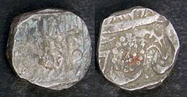 | Description / विवरण | Descrpn./Obv Legend rubbed off . Descrpn./Rev Derahjat zarb dotted peepal leaf above the letter re, partly visible |