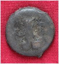 | Description / विवरण | The shape of the coin is circular. Obverse- - Kushana type king, standing with his right arm curved up ward and left arm is not clearly visible. Reverse- Probably the figure of MAO or Moon-God with his right arm curved upward and the crescent above the left shoulder. |