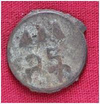 | Description / विवरण | The shape of the coin is circular. Obverse- probably the figure of MAO or Moon God- with his right hand curved upward and the crescent above the left.shoulder. Reverse- Three hills or cone like object placed in a straight line and below them there is an inscription. |