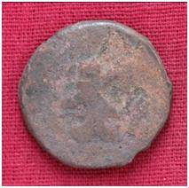 | Description / विवरण | The coin is circular in shape. Obverse- Kushana type king standing with his Right hand curved Up wards and the Left arm extended. Reverse- probably the figure of Mao or Moon God with Right arm curved Up wards and the crescent above the left shoulder. |