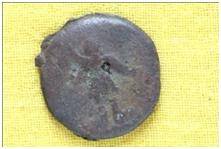 | Description / विवरण | The coin is circular in Shape. Obverse Kushana type king, standing and pointing with his right hand curved upwards and left arm extended. Reverse The figure of MAO or Moon God with right arm curved upwards and the crescent above the left shoulder. |