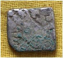 | Description / विवरण | The coin is Square in shape. Obverse Contains four symbols. Chakra, Moon, Nandipada and another symbol is indistinct. Reverse Blank |