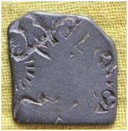 | Description / विवरण | It is an imperial type of Punch-marked Coin. The coin is irregular in shape. Obverse Contains 5 symbols i.e. Sun, animal, six armed, wheel taurine, a hairy battle like object placed over a standard with a platform taurine on either side of the shoft. Reverse Contains 2 minute symbol i.e. tree, others are indistinct. |