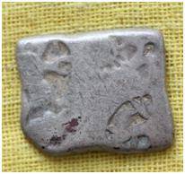 | Description / विवरण | The coin is an imperial type Punch- marked coin. The shape of the coin is irregular. Obverse Leaves, S mark, triangle and other symbols are indistinct. Reverse Crescent Moon. |