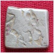 | Description / विवरण | The coin is an imperial type Punch- marked coin. The shape of the coin is irregular. Obverse Chakra and other symbols are indistinct. Reverse Symbol is indistinct. |