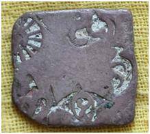 | Description / विवरण | The coin is an imperial type Punch- marked coin. The shape of the coin is irregular. Obverse Sun, six armed, architectural and other symbols are indistinct. Reverse Nandipada and other symbols are minute. |