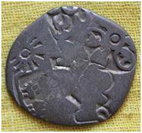 | Description / विवरण | The coin is an imperial type Punch- marked coin. The shape of the coin is round. Obverse Sun, bull, six armed, taurine and other symbols are indistinct. Reverse Trees, leaf and other symbols are minute. |