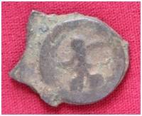 | Description / विवरण | The Shape of the coin is irregular. Obverse Kushana type king, standing with his right hand curved upwards and left hand extended. Reverse Probably the figure of MAO or Moon-God with right hand curved upwards and left hand not visible, the Crescent is above the left shoulder. |