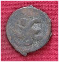 | Description / विवरण | The Shape of the coin is Circular. Obverse Kushana type king, standing with his right hand curved upwards and left hand extended . Reverse Probably the figure of MAO or Moon-God with right hand extended upwards and left hand not visible, the Crescent is above the left shoulder. |
