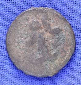 | Description / विवरण | The shape of the coin is circular. Obverse Probably the figure of MAO or Moon-God with his right hand curved upward and the crescent above the left shoulder. Reverse Three hill or cone like objects placed in a straight line and below them,there is an inscription. |