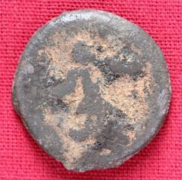 | Description / विवरण | The shape of the coin is circular. Obverse Kushana type king, standing with his right hand not visible and his left hand extended slightly curved downwards. Reverse Probably the figure of MAO or Moon-God with his right and curved upwards and the crescent above the left shoulder. |