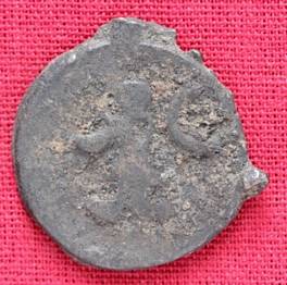 | Description / विवरण | The shape of the coin is circular. Obverse Probably the figure of MAO or Moon God with his right hand extended and the crescent above the left shoulder. Reverse Three hills or cone like objects placed in a straight line and below them some legend. |