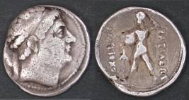 | Description / विवरण | Descrpn./Obv Diademed head of king to right. Descrpn./Rev Zeus standing lefthurling thunderbolt; Greek inscription Basileos Antioxou |